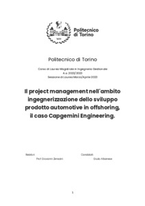 Il project management nell'ambito ingegnerizzazione dello sviluppo prodotto automotive in offshoring, il caso Capgemini Engineering = Project management in the field of automotive product development engineering in offshoring, the Capgemini Engineering case.