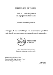Sviluppo di una metodologia per manutenzione predittiva real-time di un componente meccanico in ambito automotive = Development of a methodology for real-time predictive maintenance of a mechanical component in the automotive sector.