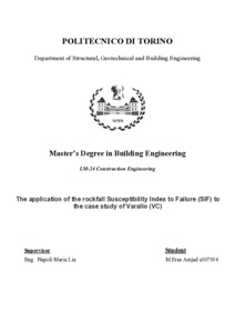 The application of the rockfall Susceptibility Index to Failure (SIF) to the case study of Varallo (VC).