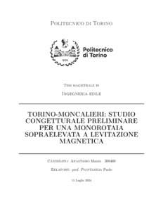TORINO-MONCALIERI: STUDIO CONGETTURALE PRELIMINARE PER UNA MONOROTAIA SOPRAELEVATA A LEVITAZIONE MAGNETICA = TURIN-MONCALIERI: PRELIMINARY CONJECTURAL STUDY FOR A RAISED MAGLEV MONORAIL.