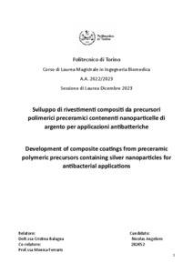 Sviluppo di rivestimenti compositi da precursori polimerici preceramici contenenti nanoparticelle di argento per applicazioni antibatteriche = Development of composite coatings from preceramic polymeric precursors containing silver nanoparticles for antibacterial applications.