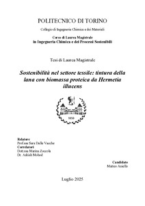 Sostenibilità nel settore tessile: tintura della lana con biomassa proteica da Hermetiaillucens = Sustainability in the textile sector: dyeing wool with protein biomass from Hermetia illucens.