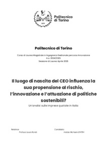 Il luogo di nascita del CEO influenza la sua propensione al rischio, l'innovazione e l'attuazione di politiche sostenibili? = Does the CEO's birthplace influence his or her risk propensity, innovation and implementation of sustainable policies?