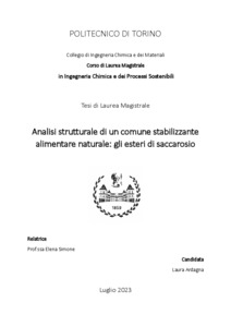 Analisi strutturale di un comune stabilizzante alimentare naturale: gli esteri di saccarosio = Analysis of the structural behaviour of a food stabilizer: sucrose ester.