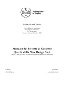 Manuale di Sistema Gestione Qualità New Design = New Design's Manual of Quality Management System.