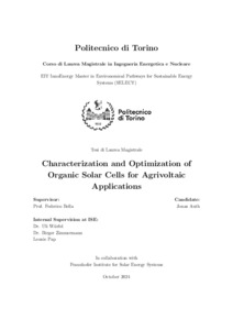 Characterization and Optimization of Organic Solar Cells for Agrivoltaic Applications.