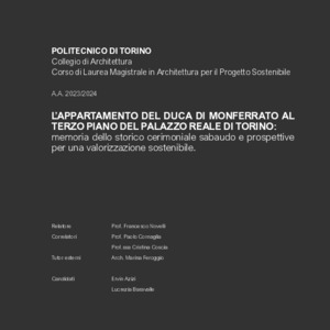 L'appartamento del Duca di Monferrato al terzo piano del Palazzo Reale di Torino: memoria dello storico cerimoniale sabaudo e prospettive per una valorizzazione sostenibile. = The apartment of the Duke of Monferrato on the third floor of the Royal Palace of Turin: memory of the historic ceremonial of Savoy and prospects for sustainable enhancement.