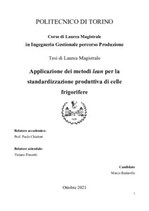 Applicazione dei metodi lean per la standardizzazione produttiva di celle frigorifer = Application of Lean methods for the standardization of the production of refrigerated body cells.