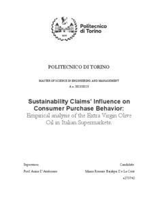 Sustainability claims influence in the Consumer Purchase Behavior: Empirical analysis of the Extra Virgin Olive Oil in Italian Supermarkets.