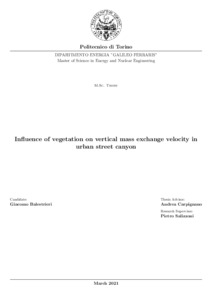 Influence of vegetation on vertical mass exchange velocity in urban street canyon.