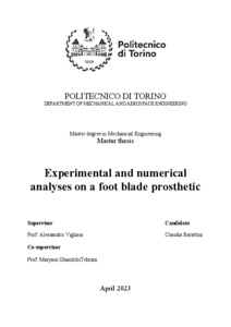 Analisi sperimentali e numeriche di una protesi sportiva del piede = Experimental and numerical analyses on a foot blade prosthetic.