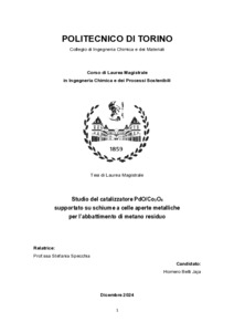 Studio del catalizzatore PdO/Co3O4 supportato su schiume a celle aperte metalliche per l’abbattimento di metano residuo = Study of the PdO/Co3O4 catalyst supported on metal open-cell foams for the abatement of residual methane.