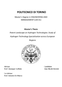 Patent Landscape on Hydrogen Technologies: Study of Hydrogen Technology Specialisation across European Regions.