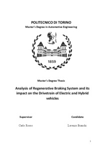Analysis of Regenerative Braking System and its impact on the Drivetrain of Electric and Hybrid vehicles.