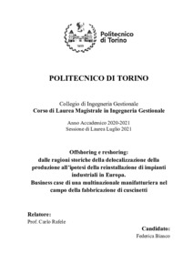 Offshoring e reshoring: dalle ragioni storiche della delocalizzazione della produzione all’ipotesi della reinstallazione di impianti industriali in Europa. Business case di una multinazionale manifatturiera nel campo della fabbricazione di cuscinetti = Offshoring and reshoring: from the historical reasons for the relocation of production to the hypothesis of the reinstallation of industrial plants in Europe. Business case of a manufacturing multinational in the field of bearing manufacturing.