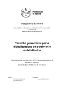 Tecniche geomatiche per la digitalizzazione del patrimonio architettonico. Classificazione nuvole di punti 3D mediante algoritmi di Machine Learning. Caso studio dell’Abbazia di Novalesa. = Geomatics techniques for the digitization of architectural heritage. 3D point cloud classification using Machine Learning algorithms. Novalesa Abbey case study.
