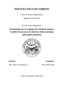 Metodologia per lo sviluppo del dominant design e per l'analisi dell'impatto economico della tecnologia della guida autonoma = Methodology for dominant design development and economic impact analysis of self-driving technology.