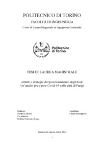 Airbnb e strategie di riposizionamento degli hosts: un’analisi pre e post Covid-19 nella città di Parigi = Airbnb and host's repositioning strategies: a pre and post Covid-19 analysis in the city of Paris.