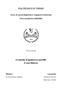 Controllo di gestione: teoria e applicazione delle metodologie studiate in una PMI con previsioni di forte crescita = Management control: theory and application of the studied methodologies in an SME with strong growth forecasts.
