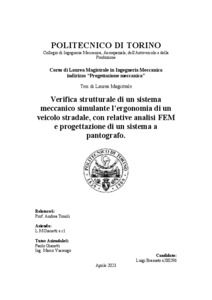 Verifica strutturale di un sistema meccanico simulante l’ergonomia di un veicolo stradale, con relative analisi FEM e progettazione di un sistema a pantografo = Structural verification of a mechanical system simulating the ergonomics of a road vehicle, with related FEM analysis and design of a pantograph system.