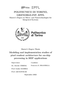 Modeling and implementation studies of pixel readout architecture for on-chip processing in High Energy Physics applications.