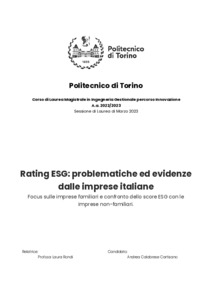 Rating ESG: problematiche ed evidenze dalle imprese italiane. Focus sulle imprese familiari e confronto dello score ESG con le imprese non-familiari = ESG rating: issues and evidence from Italian companies. Focus on family firms and comparison of ESG scores with non-family firms.