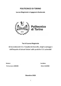 GLI INVESTIMENTI ESG:L’ANALISI DEI BENEFICI, DEGLI SVANTAGGI E DELL’IMPATTO DI ALCUNI FATTORI SULLE PRATICHE ESG AZIENDALI.