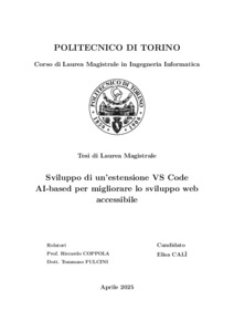 Sviluppo di un'estensione VS Code AI-based per migliorare lo sviluppo web accessibile = Development of an AI-based VS Code extension to improve accessible web development.