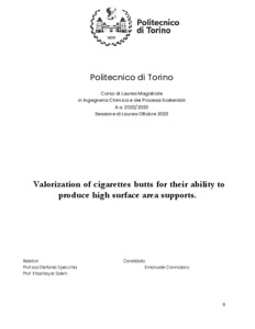Valorization of cigarettes butts for their ability to produce high surface area supports.