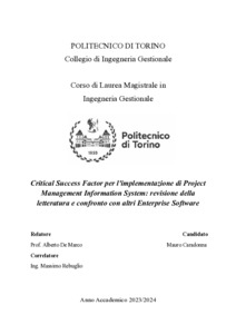 Critical Success Factor per l'implementazione di Project Management Information System: revisione della letteratura e confronto con altri Enterprise Software = Critical Success Factor for Project Management Information System Implementation: Literature Review and Comparison with Other Enterprise Software.
