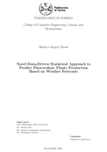 Novel data-driven statistical approach to predict photovoltaic plants production based on weather forecasts.