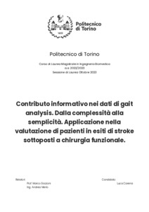 Contributo informativo nei dati di gait analysis. Dalla complessità alla semplicità. Applicazione nella valutazione di pazienti in esiti di stroke sottoposti a chirurgia funzionale = Informative contribution in gait analysis data. From complexity to simplicity. Application in the evaluation of stroke patients undergoing functional surgery.