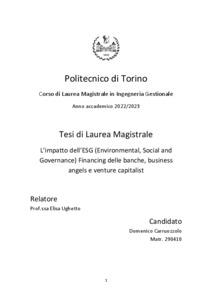 Impatto dell'"ESG Financing" delle banche, business angels e venure capitalist = "ESG Finacing" impact on bank, business angels and venture capitalist.