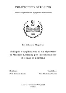 Sviluppo e applicazione di un algoritmo di Machine Learning per l'identificazione di e-mail di phishing = Development and application of a Machine Learning algorithm for phishing emails identification.