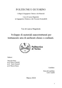 Sviluppo di materiali nanostrutturati per trattamento aria di ambienti chiusi e confinati = Development of nanostructured materials for air treatment in enclosed and confined environments.