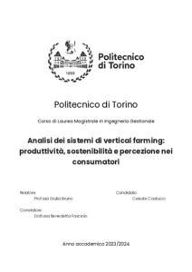 Analisi dei sistemi di vertical farming: produttività, sostenibilità e percezione nei consumatori = Analysis of vertical farming systems: productivity, sustainability and consumer perception.