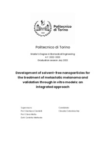 Development of solvent-free nanoparticles for the treatment of metastatic melanoma and validation through in vitro models: an integrated approach.