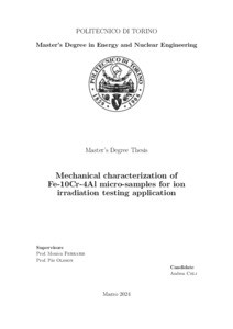 Mechanical characterization of Fe-10Cr-4Al micro-samples for ion irradiation testing application.