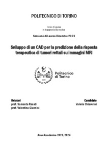 Sviluppo di un CAD per la predizione della risposta terapeutica di tumori rettali su immagini MRI = CAD development for predicting the therapeutic response of rectal cancers based o MRI images.