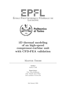1D thermal modeling of a high-speed compressor-turbine unit with CFD-FEA validation.