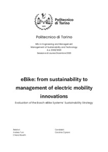 eBike: from sustainability to management of electric mobility innovations Evaluation of the Bosch eBike System's Sustainability Strategy.
