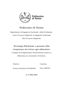 Tecnologia Blockchain a garanzia della trasparenza nel settore agro-alimentare: sviluppo di un’applicazione decentralizzata basata su Ethereum per un’azienda vitivinicola = Blockchain technology to ensure transparency in agri-food sector: development of a decentralized Ethereum-based application for a wine company.