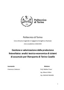 Gestione e valorizzazione della produzione fotovoltaica: analisi tecnico-economica di sistemi di accumulo per l’Aeroporto di Torino-Caselle = Management and enhancement of photovoltaic production: technical and economic analysis of storage systems for Turin-Caselle Airport.