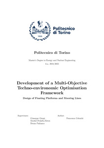 Development of a Multi-Objective Techno-environomic Optimisation Framework: Design of Floating Platforms and Mooring Lines.