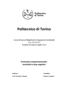 Economia comportamentale: euristiche e bias cognitivi = Behavioural economics: heuristics and cognitive biases.
