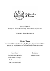 Experimental investigation of La(0,6)Sr(0,4)Mn(0,6)Cr(0,4)O3 perovskite oxidation kinetics for thermochemical carbon dioxide splitting redox cycles.