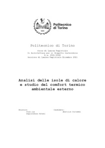 Analisi delle isole di calore e studio del confort termico ambientale esterno = Analysis of urban heat islands and study of external environmental thermic confort.
