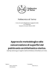 Approccio metodologico alla conservazione di superfici del patrimonio architettonico storico. Esempi dal borgo di Agliè e dall'architettura Olivettiana di Ivrea = Methodological approach to the conservation of surfaces of historical architectural heritage. Examples from the village of Agliè and Olivetti's architecture of Ivrea.