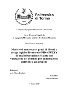 Modello dinamico a sei gradi di libertà e design logiche di controllo PID e FUZZY di una imbarcazione foilante con valutazione dei consumi per alimentazioni elettriche e ad idrogeno = Dynamic model with six degrees of freedom and PID and FUZZY control logic design of a foiling boat with consumption evaluation for electric and hydrogen power supplies.
