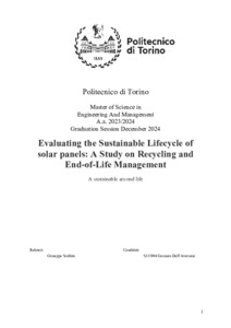 "Valutazione del ciclo di vita sostenibile dei pannelli solari: uno studio sul riciclo e sulla gestione del fine vita.".